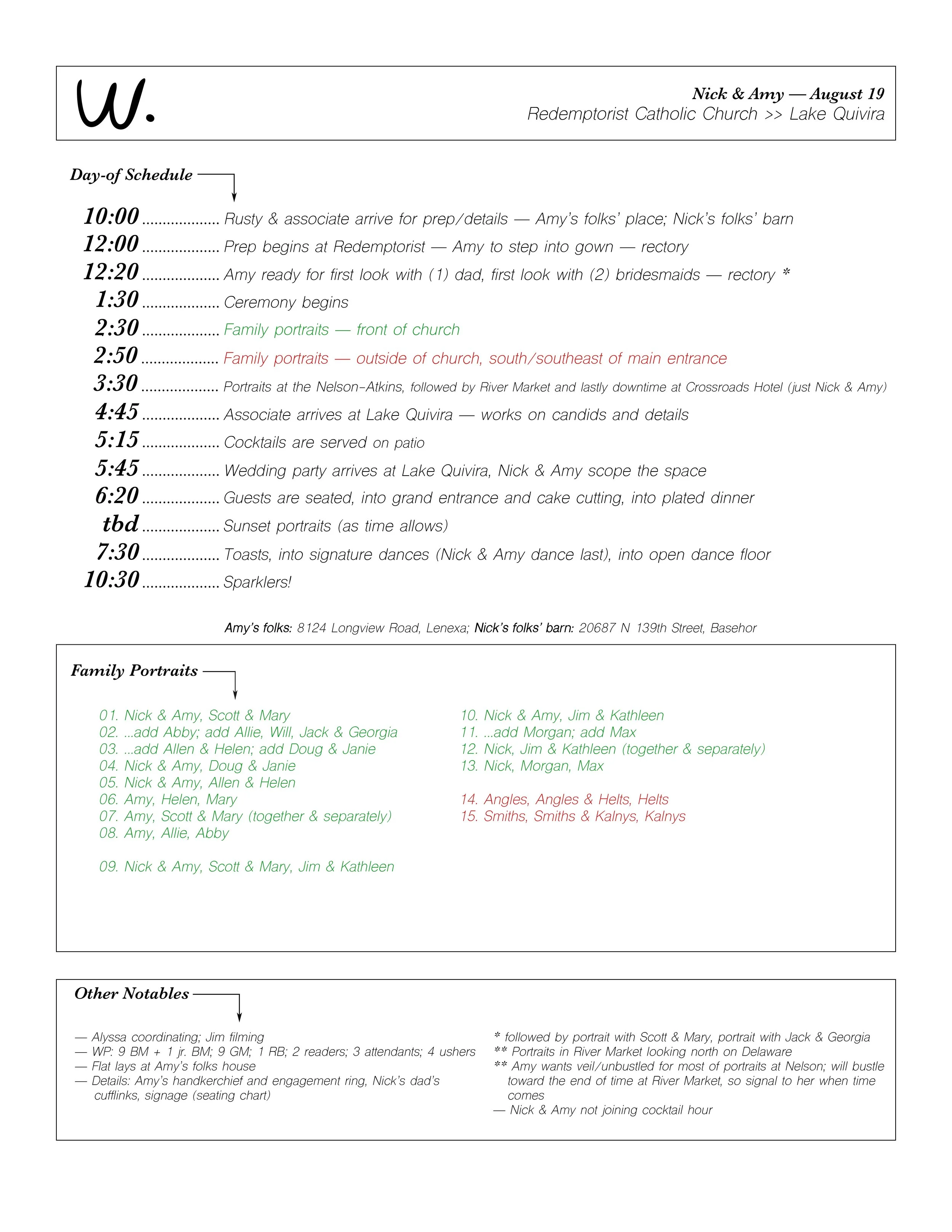 For the sake of reference, you can see an example of a day-of timeline we built for our recent clients, Amy and Nick, below:
